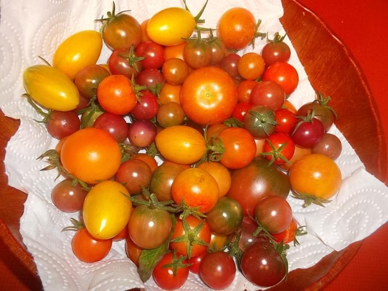 Wow, es gibt immer noch Tomatenernten - toll! Wahrscheinlich hätte ich auch noch welche dran, habe die Pflanzen aber vor 2-3 Wochen aus dem Gewächshaus geschmissen. Die weisse Fliege hat so Überhand genommen - das klebrige Zeug war mir einfach nur noch fies geworden. So habe ich jetzt noch einige zum nachreifen. Es reichte aber auch. Insgesamt war es ein sehr gutes Tomatenjahr. Letztes Jahr hatte ich 48 Pflanzen, dieses Jahr 26 und für nächstes Jahr werde ich nochmal abspecken. So viele brauchen wir dann doch nicht.
