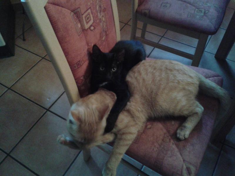 heute nachmittag lag Willi auf dem Stuhl in der Küche. Und plötzlich bekam er Besuch zum Spielen ;D