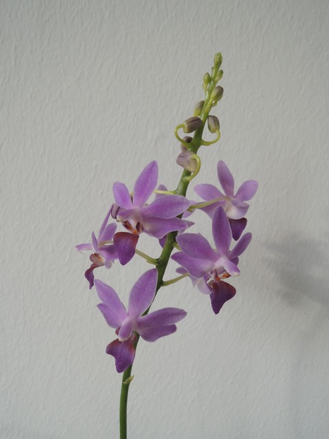 Da gibts manchmal so Überraschungen. Ich hab ein namenloses lilanes Dendrobium der Phalaenopsis Gruppe rumstehen. Fast jedes Jahr gabs einen neuen Trieb, aber nicht jeder hat geblüht. Dazu noch ein Wuchs in alle Richtungen, d. h. viel Platz und wenig los.