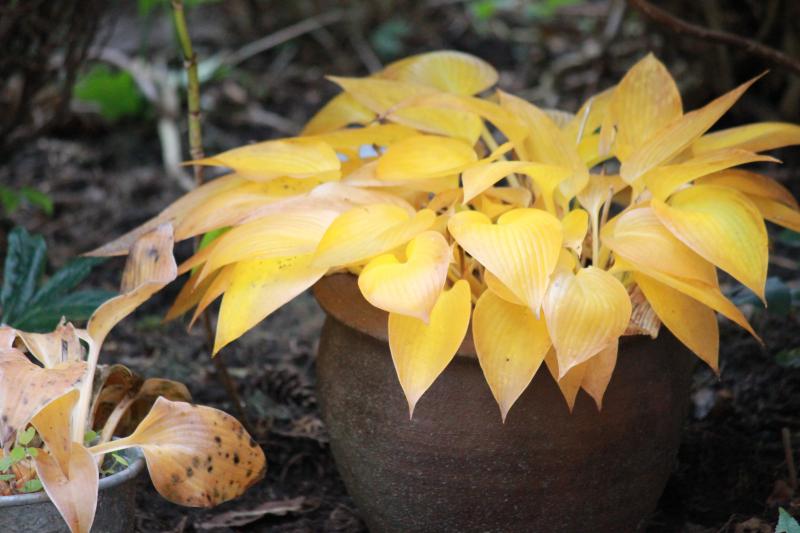 Viele Hostas haben, bevor sie einziehen, noch einen großen Auftritt mit der einsetzenden Herbstfärbung.