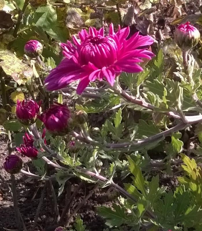 Ist eine ehemalige Topfchrysantheme, die ich so sehr mag, dass ich sie gleich zweimal in den Garten gesetzt habe. Und beide Exemplare gedeihen gut.