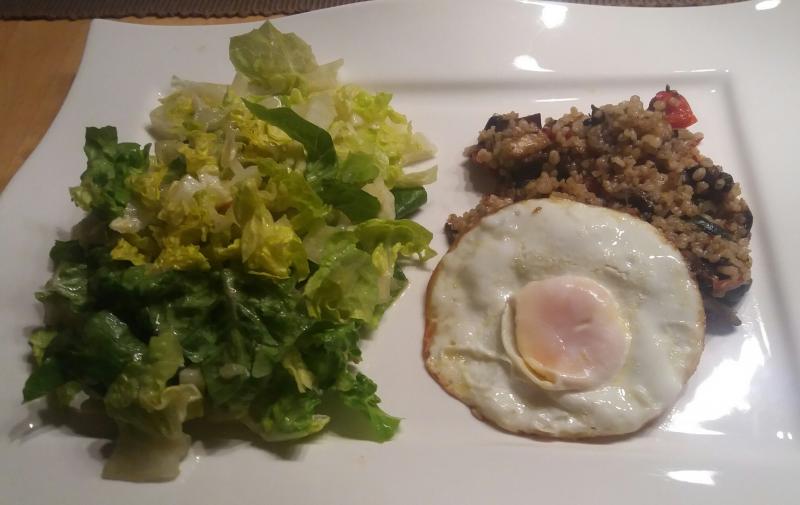 Wir hatten Graupen mit Gemüse, Spiegelei und Salat.