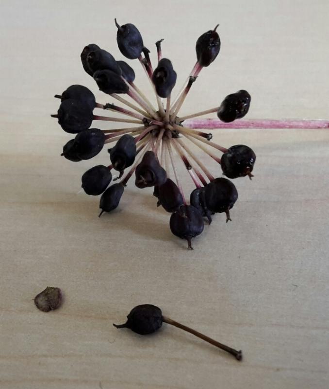 Kalopanax semptemlobus Früchte. Zur Zeit kann man die Früchte unter dem Baum auflesen.