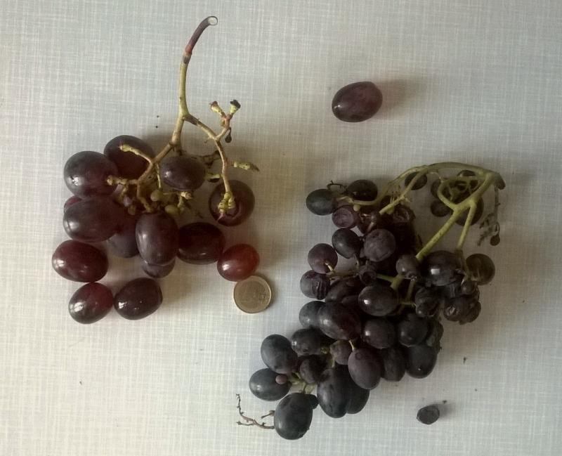Trotz 2 Wochen Niesel/Regen kein Botrytis, alles lecker. Nisina könnte durchaus noch eine Woche Sonne vertragen, aber damit ist nicht mehr zu rechnen. Nächstes Jahr hat sie mehr Altholz und treibt schneller aus.