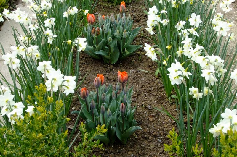 Die Kombination von dunkelroten Tulpen mit weißen späten Narzissen habe ich auch gepflanzt. Mal sehen, ob es so schön wird, wie ich mir das vorstelle.