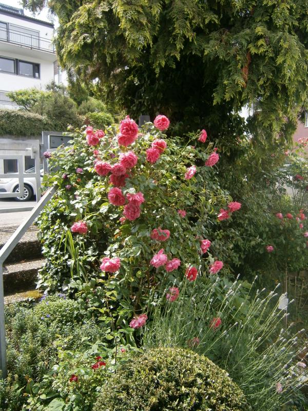 Ich hatte im alten Garten etliche Jahre die Rosarium Uetersen, hatte sie als ganz junge Rose gepflanzt, leider hat sie Jahre später den Umzug mitten im Hochsommer trotz kräftigstem Rückschnitt auf 30 cm nicht überlebt. :'(