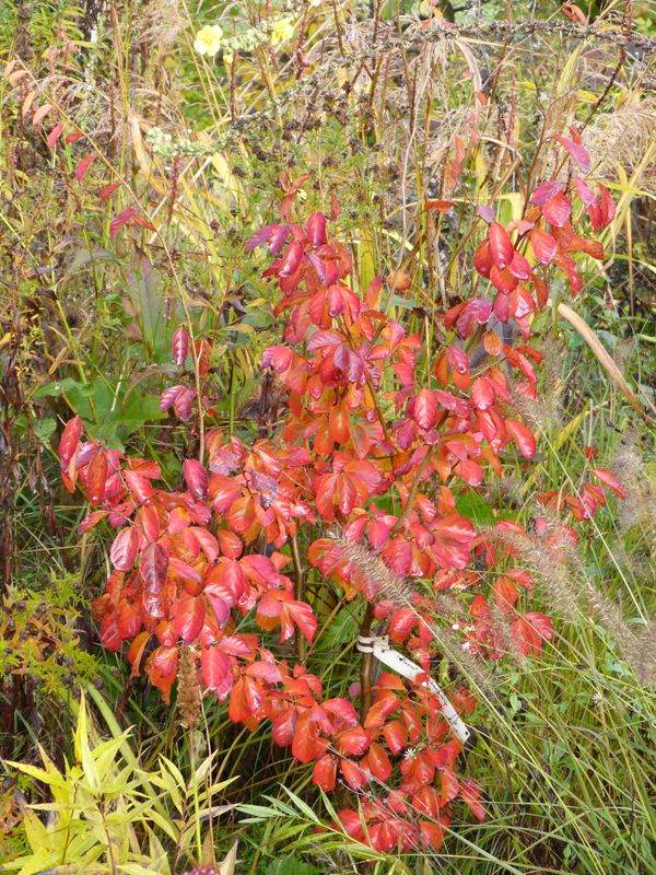 Beim Einstellen der Töpfe ins Winterquartier habe ich die wenigen noch belaubten Herbstfärber fotografiert.