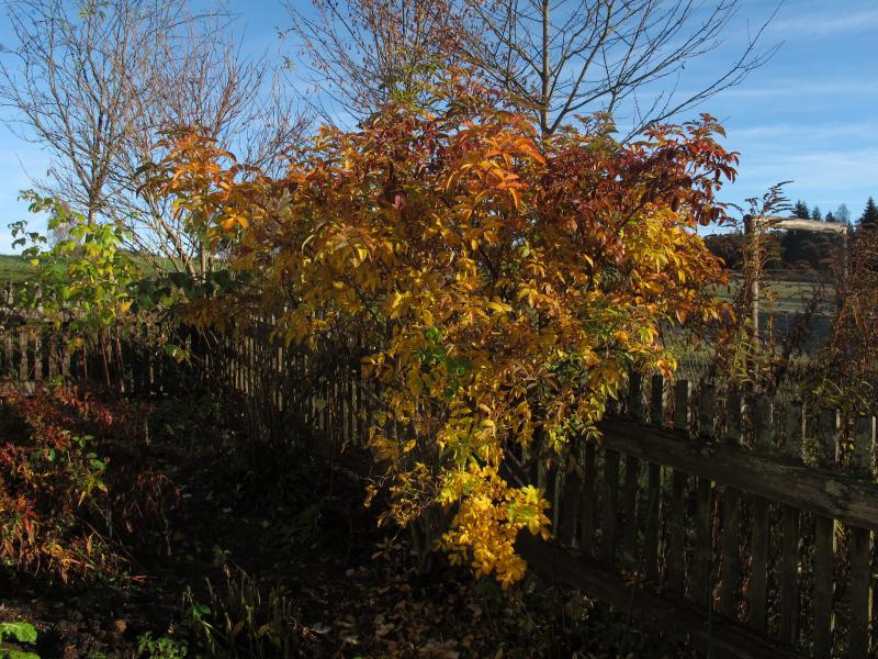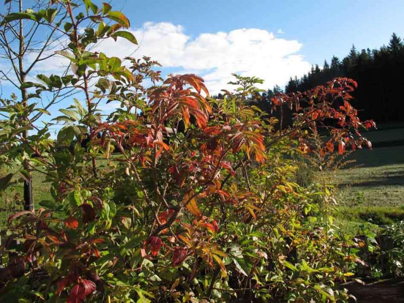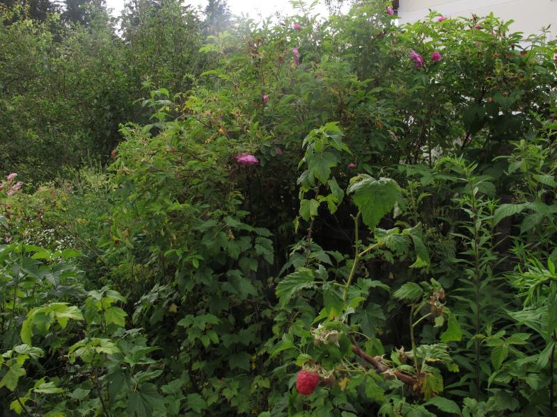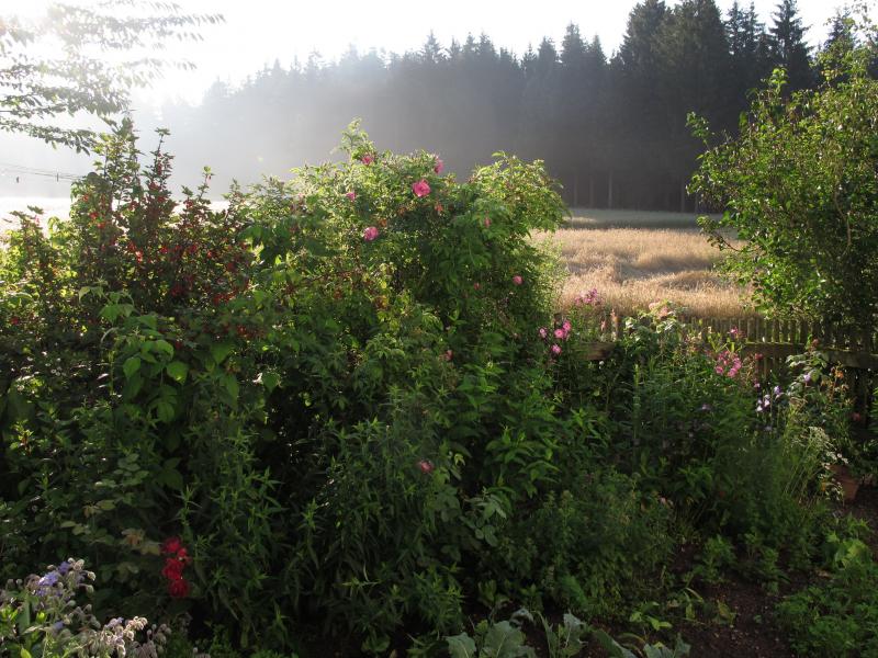 Die 'Kaiserin des Nordens', als kleiner Ausläufer vor ein paar Jahren (nach einem besonders strengen Winter mit vielen Totalausfällen zu mir gekommen und herzlich begrüßt), hat sich zu einem wahren Monster entwickelt und macht hinsichtlich Frosthärte ihrem Namen wirklich Ehre. Heuer hab ich sie nicht mehr in voller Pracht erlebt, weil ich erst später auf's Land gekommen bin, nur noch die letzten Blüten - ihr Duft ist der stärkste Rugosaduft, den ich kenne: feinstes Parfum, mit einer Andeutung von Cyclamen, wie ich es bei einer (einzigen) Rosa alpina erlebt habe. Sie blüht nicht so überreich wie andere Rugosas, dafür aber sehr lange, und die Blüten halten länger, wie mir vorkommt. Ich mußte je eine großen Trieb im bzw. außerhalb des Gemüsegartens kappen, weil sie so überhand genommen hatte.