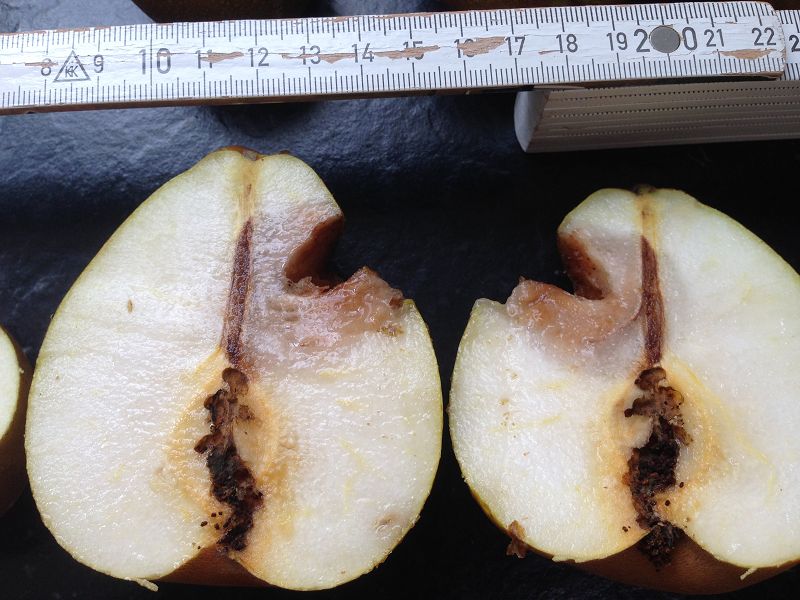 Gräfin von Paris sollte eher gegen Dezember bis Januar lagerbar und nach kurzer Lagerung essreif sein, stattdessen ist diese hier schon durchweg teigig.