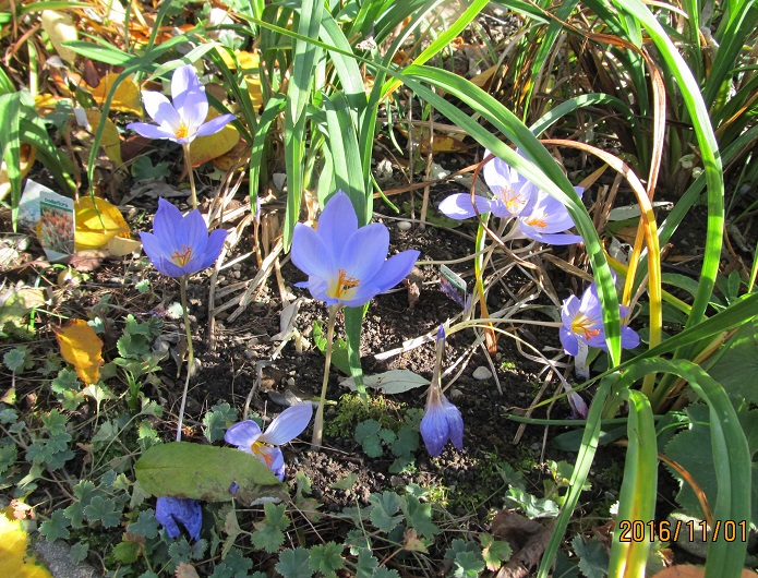Juchhu, meine frisch gepflanzten Crocus speciosus blühen doch noch !