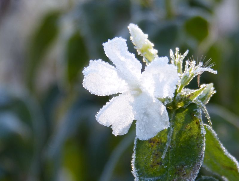 Gradmesser für Frost ist für mich immer die Kapuzinerkresse. Ab 0 Grad zerfällt sie und zeigt damit manchmal den genauen Fluss der kalten Luft an. Und was finde ich da heute: