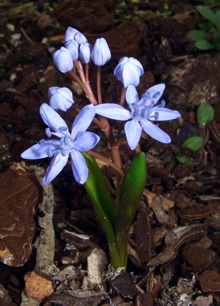 Scilla puschkinioides ist etwas schwieriger als ihre Verwandten, da sie eine ausgeprägte Sommerruhe mit Trockenheit benötigt. Daher steht sie zusammen mit anderen Zentralasiaten, wie Fritillaria stenanthera und diversen Corydalis-Arten. Besonders schön bei dieser Scilla sind die kräftig hellblau gefärbten Staubgefässe.
