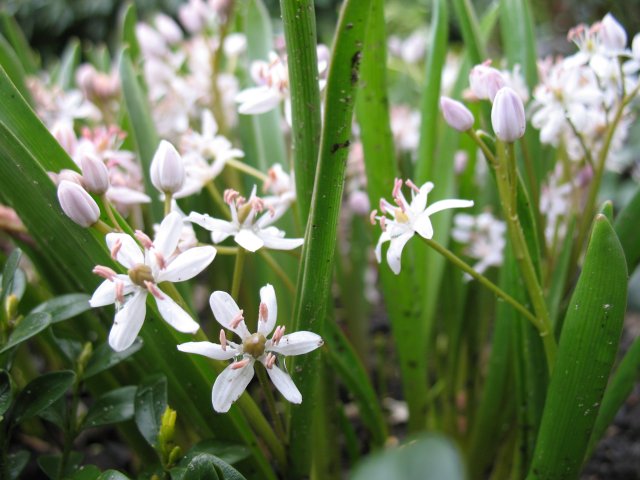 Bei mir haben die Puschkinien das Blühen angefangen. Scilla und Chionodoxa stehen in den Startlöchern.
