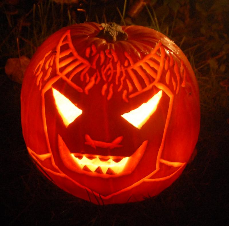 Meine große Tochter steht auf Mangas. Der Kürbis ist unsere gemeinschaftliche Arbeit, sie hat allerdings den größten Teil dadran gemacht. Ich habe nur die Skizze auf die Frucht übertragen und ein paar Feinheiten nachgeschnitzt.