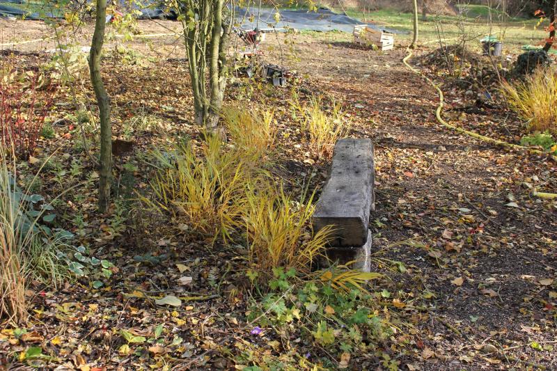 Und direkt gegenüber eine Bank. Dort möchte ich auch noch mehr Hakonechloa pflanzen, so dass man praktisch von ihr umgeben wird.