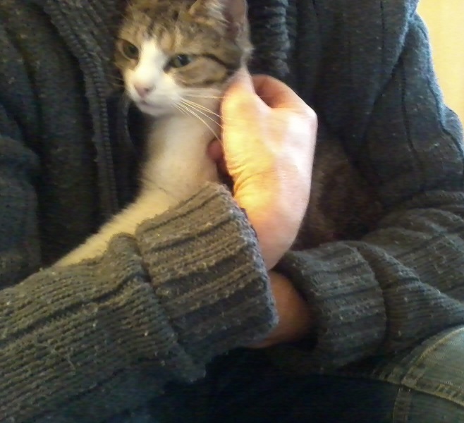 Und nach dem Schachtelabenteuer muss Katz sich dann erst mal unter GGs Teddyjacke aufwärmen...