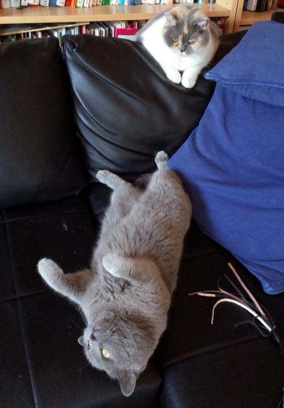 Die Liese streitet zur Zeit bevorzugt mal wieder um den Stricksessel meiner Frau. Das blöde ist, sie gewinnt meistens, weil ständiges auf die Schulter springen bzw. Schulter treteln ist bei komplizierten Arbeiten wohl recht hinderlich. Der Verzählfaktor ist zu hoch.
