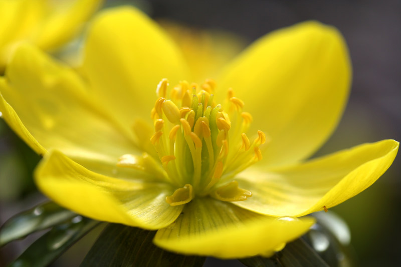Winterling, mit großer Blende fotografiert. Nur die Staubgefäße sind scharf, war so von mir gewollt