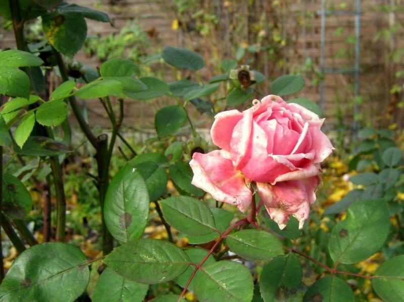 Man soll nicht meinen, dass die Rose so noch wachsen und blühen kann, gell?
