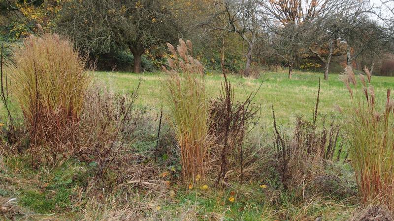 ... zu den beiden Miscanthus 'Grazillimus', die ich 2014 gepflanzt hatte und die ihre Blüten sehr hoch hinaus schieben.