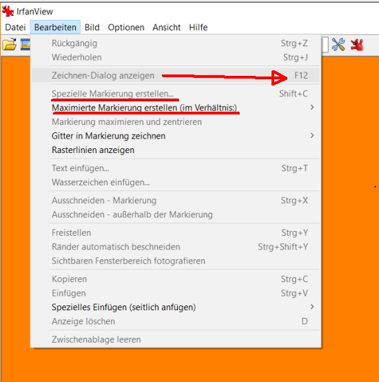 ---> es empfiehlt sich, in IrfanView mal unter "Hilfe", "Tastaturkürzel" reinzuschauen !!! (mit "d" löscht man die Anzeige)
