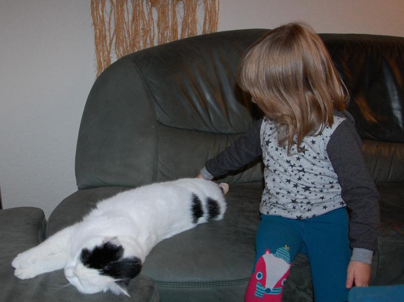 Meine Enkelmaus:"Ich streichel die Miez, weil die so lieb ist!"