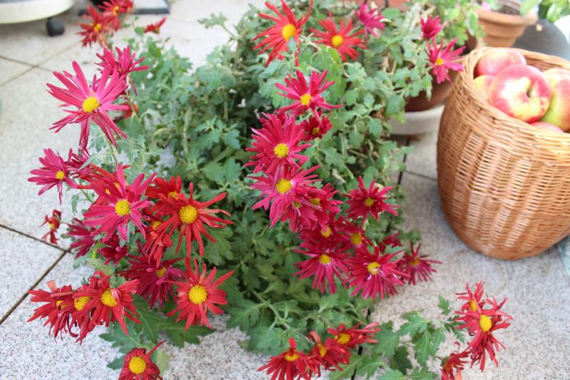 Wüchsig, blühfreudig und gesund sieht sie aus, Deine Balkon-Chrysantheme. Solltest sie vermehren und einen Teil auspflanzen. Wenn sie ein, zwei richtig harte Winter übersteht und weiter gut zulegt, taugt sie für´s Freiland.