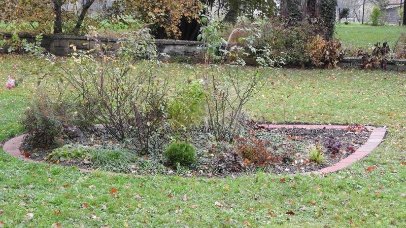 Die Umrandung besteht jetzt aus Spiraea dreimal, Zwergdeutzie und einigen Heuchera. Ich habe diesen Herbst etwas vergrössert, zum einen wegen Platz für Heuchera, zum andern weil ich die Spiersträucher und auch die Deutzia zu eng gepflanzt hatte. (Mein Augenmass bei Pflanzungen lässt manchmal ein bisschen zu wünschen übrig, das dachte ich nicht zum ersten Mal.)
