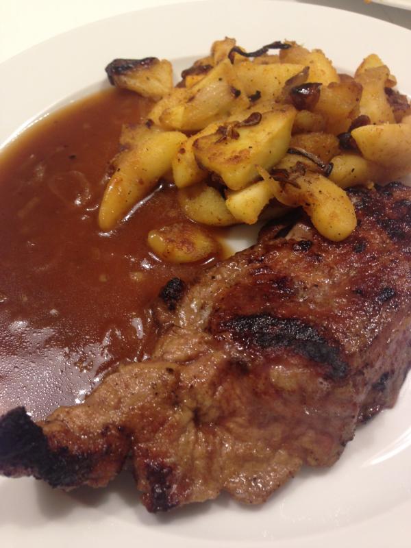 Hier Kalbsleber mit Apfel-Kartoffel-zwiebelpfanne