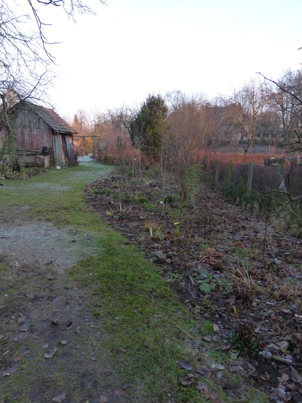 Dit machst du schon. ;) Weil's heute früh noch so knackig war, habe ich auch eine Weile gebraucht, bis ich im Garten angekommen bin. Zumindest das erste große Beet im hinteren Gartenteil ist frühblüherfertig und ein kleineres von etwa 20 m² ebenfalls. Zudem ist sämtlicher Rückschnitt und das aus den Beeten geholte Walnusslaub schon ordentlich auf den Kompost verfrachtet. Der Garten sieht direkt wieder ganz anders aus. So noch bis gestern: