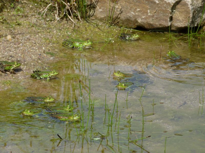 Im Mai und Juni quaken ca. 70 Wasserfrösche an meinem Teich. Zum Glück wohnt da niemand dauerhaft! Trotzdem gab es schon die erste Beschwerde. Ich mag das zum Glück!