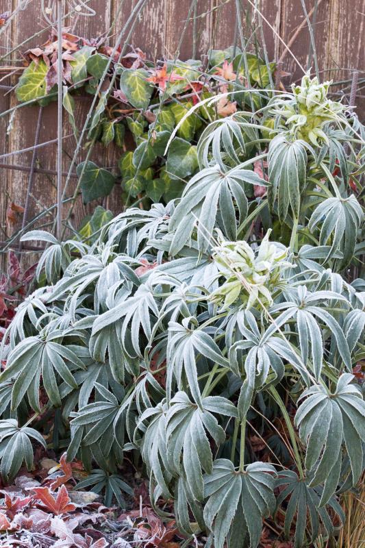 selbst bei Frost ;) im Hintergrund arbeitet sich 'Sulphur Heart' hervor - der Winterjasmin, als dritter im Bunde lässt noch auf sich warten