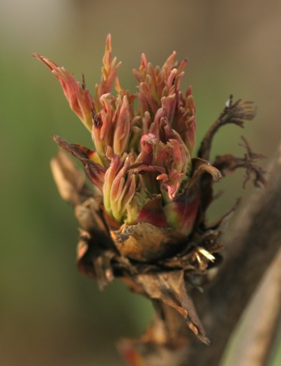 Hier der Austrieb meiner Lieblings-Päonie, der P. delavayi.Foto ist von heute