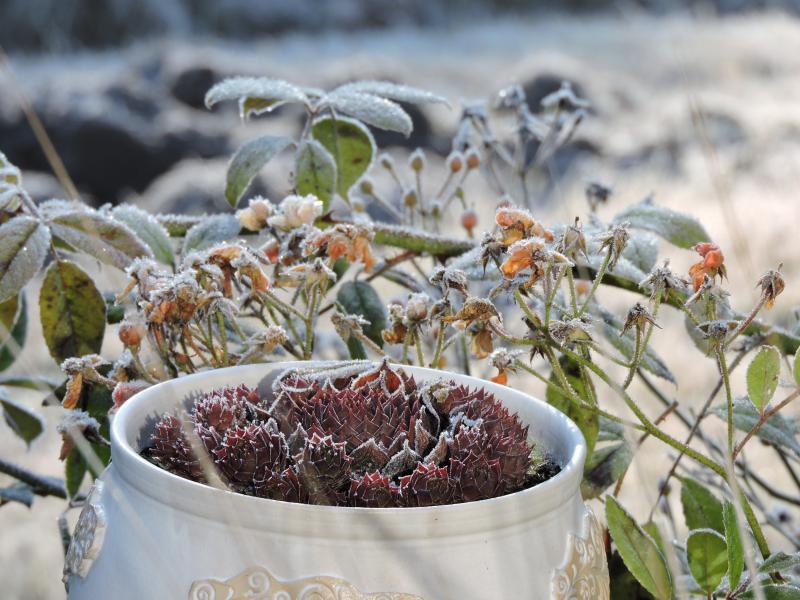 selbst bei Frost ;) im Hintergrund arbeitet sich 'Sulphur Heart' hervor - der Winterjasmin, als dritter im Bunde lässt noch auf sich warten
