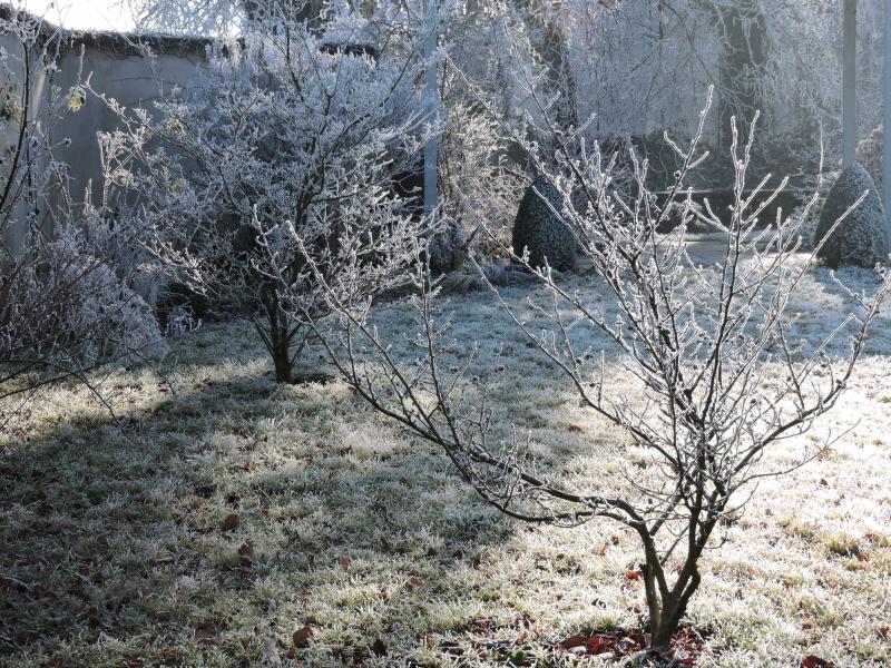 Ja, ist eindrücklich so ein Blick von oben. Ein bisschen hätte ich bei uns die Befürchtung, dass man vor lauter Wald den Garten gar nicht sieht, kann mich aber auch täuschen. Es war heute eine sehr schöne Stimmung mit Reif und Sonne, inzwischen hat es schon wieder zugezogen, es soll Schnee kommen.