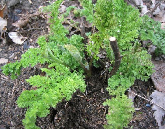 Was hier wie Möhrenkraut aus dem Boden wuschelt, ist der Austrieb der schwarzen Eberraute A. genipi . Eine hocharomatische Art, welche in Italien zu Likörherstellung benutzt wird.Ich habe das bisher nicht ausprobiert, vielleicht mache ich dieses Jahr die ersten Versuche.