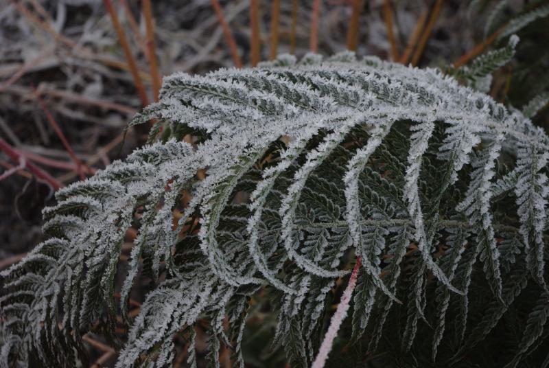 Dryopteris filix-mas 'Cristta Martindale' auch gefrostet.
