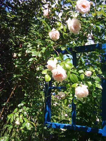 Jetzt steht sie an einem Bogen und ist nächsten Sommer hoffentlich wieder mindestens 2m hoch.Auf die andere Bogenseite kommt Gloire de Dijon, ich denke, das passt.Ach ja: Wenn man Verblühtes nicht entfernt (weil man z.B. nicht drankommt