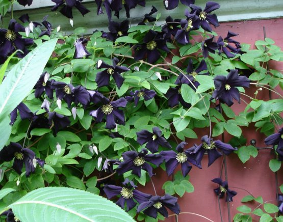 Hier noch mal was Dusteres aus dem Sommer. Diese Clematis ist wirklich fast schwarzblau, daher sind die Fotos auch oft unscharf, und wenn ich den Blitz nehme werden sie zwar schön scharf, bekommen aber eine ganz andere Farbe, so ein rötliches Purpur, das aber gar nicht der Realität entspricht. Weiß jemand, wie sie heißen könnte?