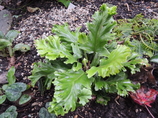 Aha, hier bekam A. rhizophyllum eine ganze Ladung Extrawürste (schön durchlässige Pflanzstelle mit Muschelkalk, absonnig; einer der allerbesten Pflanzplätze, die hier verfügbar sind) & ist dennoch verschwunden. Im Topf wuchs er zuvor prima. Man muss nicht alles verstehen & nicht jeden Farn haben - den aber eigentlich schon. :-\