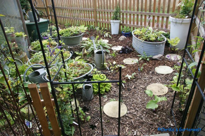 Chrisel hat ja hier ihren Hostaplatz mit, ich glaube, vorwiegend getopften Hostas gezeigt. Ich bin noch am Überlegen, wo ich die Topflinge definitiver hinstellen möchte. Vielleicht den Boden unter einem Baum mit Holzhäcksel einrichten, irgendwas Unkompliziertes auf jeden Fall.