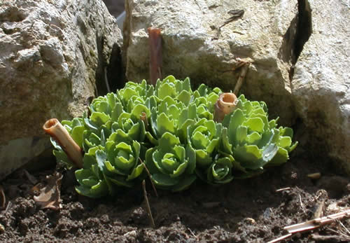 Hier noch ein Bild von Orostachys paradoxa, die im Winter den Temperaturen von bis zu -25 Grad (bei Regenschutz) überlebte...