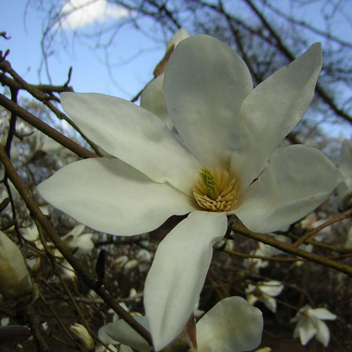 Wie schon erwaehnt, erfreuen uns nun die Magnolien mit ihrer bluete. Besonders die Stellatas, die Loebnerhybriden und sogar die wunderschoene grosse Iolanthe mit ihrer rosa Bluete.Dieses ist M. salicifolia mit ihrer nach Zitrus duftenden Bluete! Wer hat da was von Anis gesagt?Uns sonst bluehen hier Osterglocken, Schluesselblumen und wie schon erwaehnt setzt der Paeonienaustrieb ein. Bei mir karl Rosenfeld und P. officinalis.