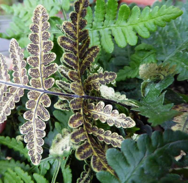 Einer meiner Lieblingsfarne existiert zurzeit in ansprechender Form nur als Sicherheitsexemplar. Zwar reicht die Winterhärte hier aus, habe aber die richtigen Pflanzplätze und Freilandbedingungen noch nicht gefunden. Die freigelassenen Exemplare sehen mickrig aus.