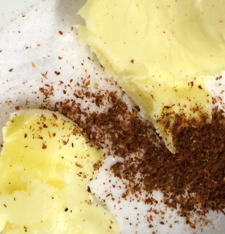 Ich habe nur noch ein Foto der Gewürzmischung, der zubereitete Snack war zu schnell weg. Ach ja - ein paar Pinienkerne waren dabei, auch wegen der Ähnlichkeit.