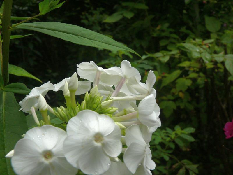 Ich selbst besitze einen ´David´, dessen Ausgangsmaterial aus England stammen soll. Hinsichtlich der runden geschlossenen Blütenform und der typischen Paniculata-Belaubung entspricht er dem Mooberry-Phlox. Allerdings stellte ich im vergangenen Herbst ebenso wie Inken und Bellis65 erstmals rosa Tönungen an der Blütenröhre einzelner Blüten fest.