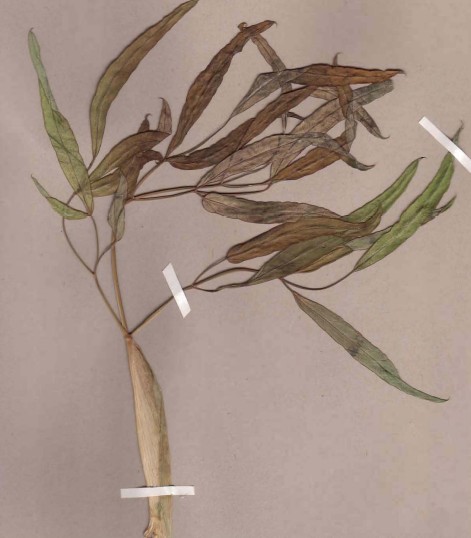 Da es die einzige Pflanze dieser Art weit und breit war, habe ich nur ein Blatt abgebrochen und zur Bestimmung zu Hause gepresst (Fotoapparat war gerade nicht greifbar). Ich dachte, das müßte ausreichen, aber bis jetzt konnte ich keinen Treffer landen.