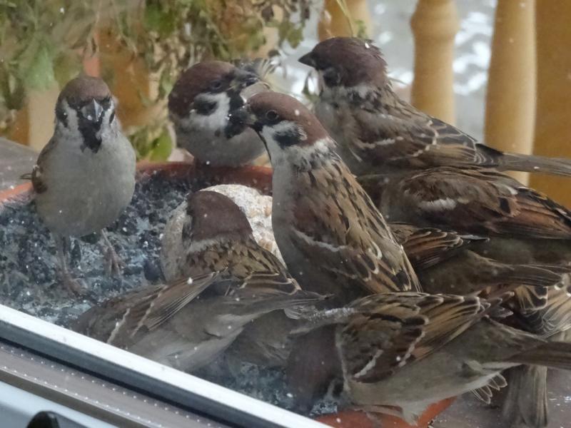 Der Hunger führt hier heuer zu recht untypischem Verhalten - haben in den Vorjahren immer zwei Amselpärchen um jede Futterstelle gekämpft, sieht man heuer bis zu 10 Amseln friedlich nebeneinander picken. Auch die Elstern, vor denen die kleinen Vögel immer Respekt hatten, führen nun zu keiner Fluchtreaktion - alles pickt gemeinsam wie im Hühnerhof.