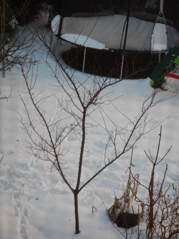 Im Sommer ist er übervoll mit Läusen, mehrfache Promanal-Behandlung im Winter war kaum bemerkbar. Vermutlich wächst er deshalb so langsam. Schneiden wollte ich ihn erst im Sommer, aber jetzt mit dem Schnee werden die Fotos einfach klarer.