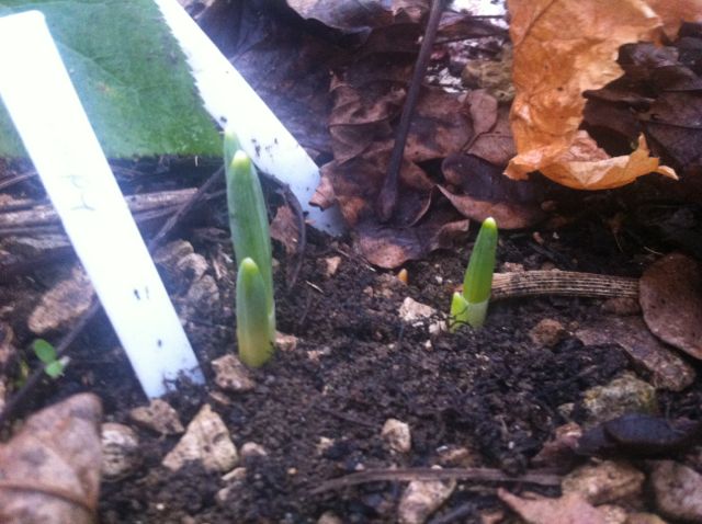Das Einzige, von dem ich noch gar nichts sehe ist `Viridapice`und das macht mich ein bisschen unruhig, insbesondere, da zwei andere an etwa gleicher Stelle schon sichtbar sind. Im Unterschied zu denen hatte ich V. im Herbst als Zwiebeln versenkt (die waren aber bestimmt nicht ausgetrocknet). Da es dort schattig ist hoffe ich mal weiter.